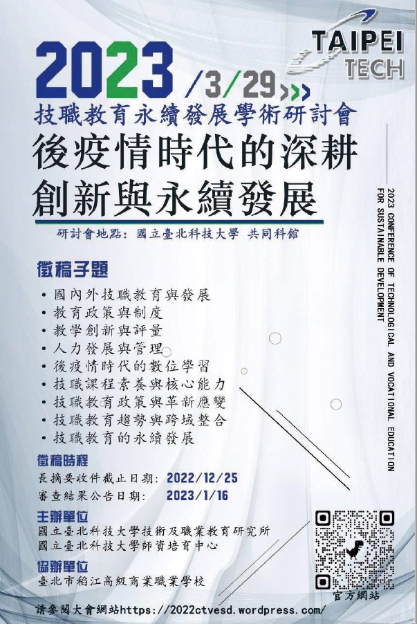 台北科技大學-2023技職教育永續發展學術研討會-徵稿資訊